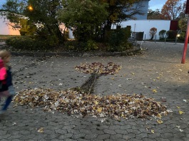 Zusammen mit Frau Cano haben die Zweitklässler einen Herbstbaum gelegt. Die Kinder waren sehr stolz auf ihr leider vergängliches Kunstwerk.